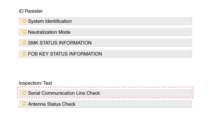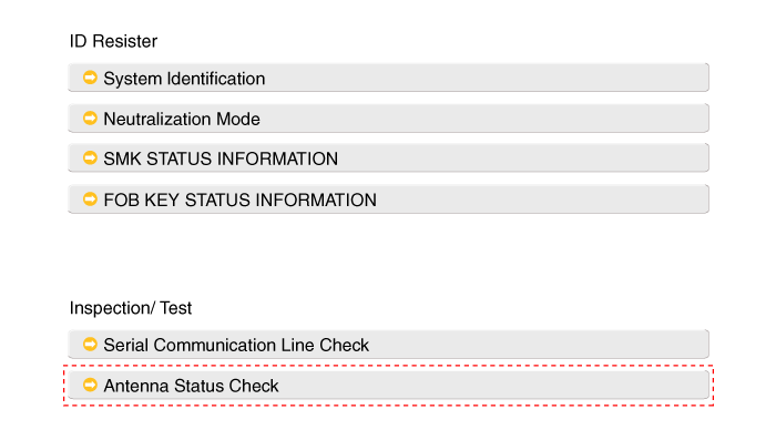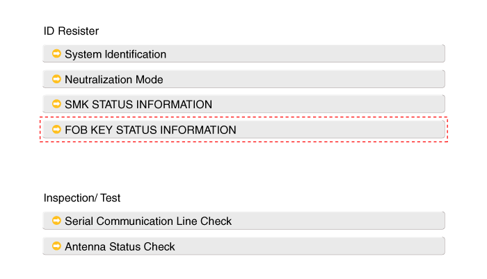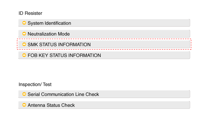После включения зажигания выберите «SMK STATUS INFO».