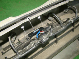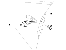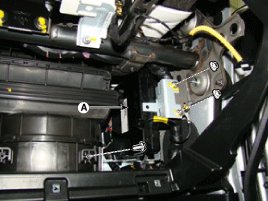 Снимите блок смарт-ключа (A) с ослабленными гайками и винтом, затем отсоедините