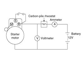 Подсоедините вольтметр (15-вольтовая шкала) к стартеру.