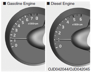Не запускайте двигатель в течение КРАСНАЯ ЗОНА тахометра. Этот может привести к серьезному повреждению двигателя.