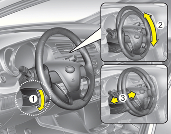 Чтобы изменить угол поворота рулевого колеса, потяните рычаг разблокировки замка (1), отрегулируйте рулевое колесо на нужный угол (2) и высоту (3), затем потяните вверх защелку рычаг для блокировки рулевого колеса место. Обязательно отрегулируйте руль в нужное положение перед началом движения.