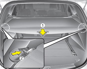1. Потяните защитный экран груза к задняя часть автомобиля за ручку (1).