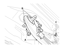 Отсоедините трос стояночного тормоза.