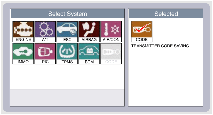 Выберите модель автомобиля, а затем выполните «СОХРАНЕНИЕ КОДА».