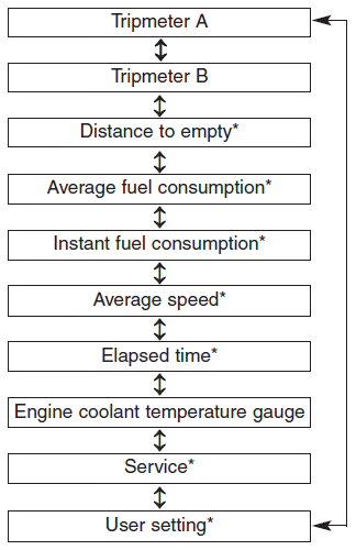 Маршрутный компьютер управляется микрокомпьютером. информационная система водителя, которая отображает информацию, связанную с вождением когда ключ зажигания находится в положении ON позиция. Вся сохраненная информация о вождении (кроме одометра, расстояния до пустого и мгновенная экономия топлива) сбрасывается, если аккумулятор отключен.