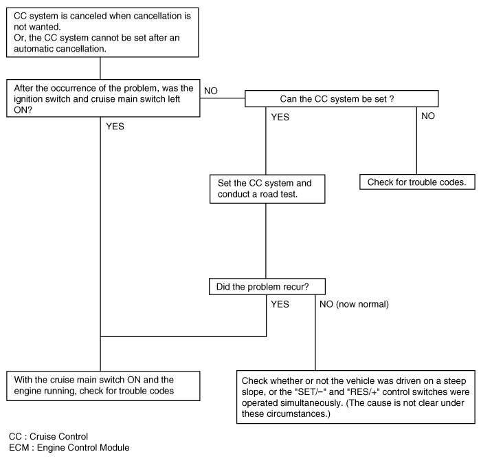 Система CC не отключается при нажатии педали тормоза