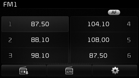 При прослушивании частоты вы хотите сохранить как предустановку, нажмите и удерживайте одну из кнопок предустановки 1–6 (более 0,8 секунды), чтобы сохранить текущая частота к выбранной предустановлен.