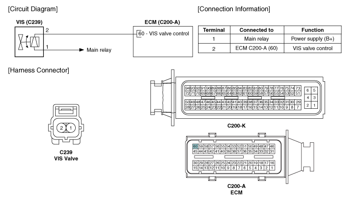 Технические характеристики электромагнитного клапана переменного впуска (VIS)