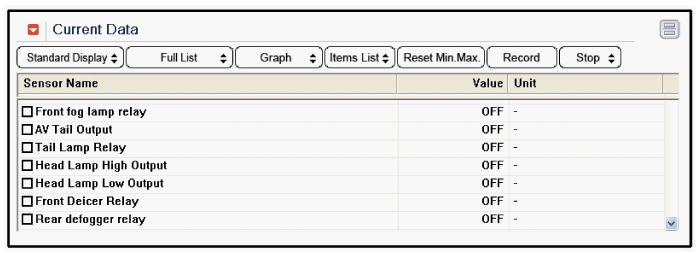 Входы переключателя антиобледенителя ветрового стекла можно проверить с помощью GDS.