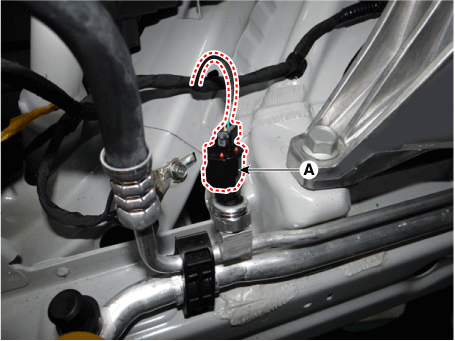 Снимите датчик давления кондиционера (А).