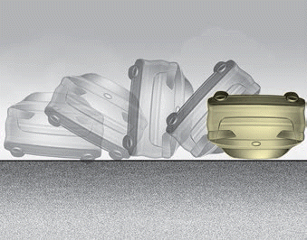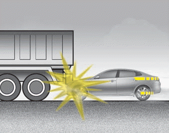 • Непосредственно перед столкновением водители часто сильно тормозят. Такое резкое торможение снижает передняя часть автомобиля, из-за чего он «ездит» под транспортным средством с более высоким Дорожный просвет. Подушки безопасности могут не раскрыться в этой ситуации "недостаточной езды", потому что силы замедления, которые обнаруживаются датчиками, могут быть значительно уменьшены за счет такие «недоездные» столкновения.