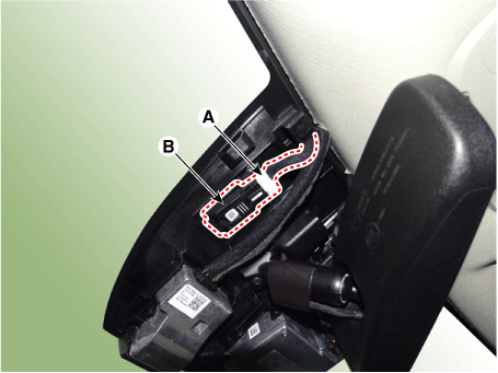 Снимите кожух внутреннего зеркала заднего вида (А), (В).