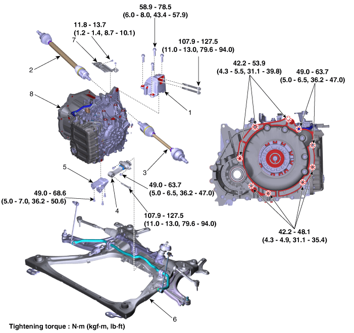 Снимите приводной вал в сборе. (См. Приводной вал и ось — «Передний карданный вал») |