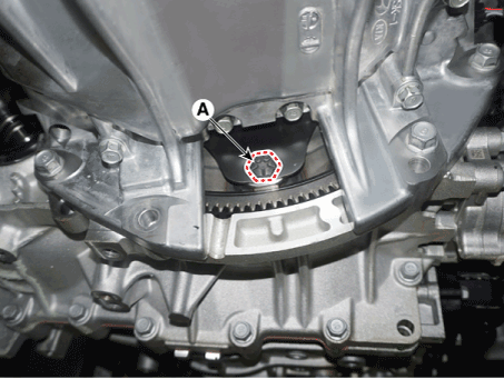Снимите болты крепления гидротрансформатора (А), вращая коленчатый вал. по часовой стрелке.