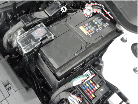 Двигайтесь вперед и назад, чтобы проверить, не ослаблены ли клеммы аккумулятора (A) или коррозия. Очистите все заржавевшие клеммы.