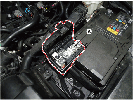 Установите амперметр клещевого типа на отрицательную (-) клемму аккумуляторной батареи.