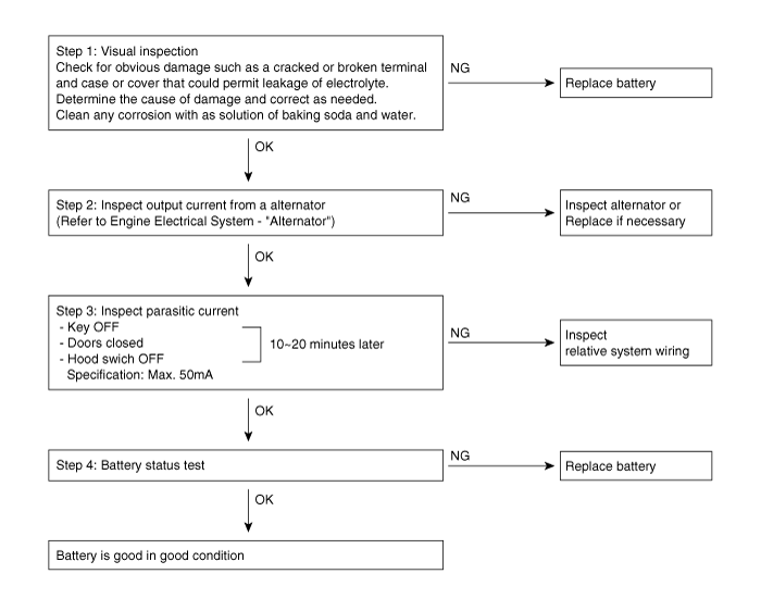 Осмотрите поддон аккумулятора на наличие повреждений, вызванных утечкой электролита.