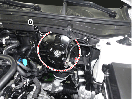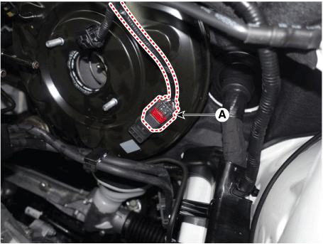 Отсоедините разъем датчика вакуумного давления усилителя тормозов (А).