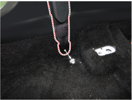 Откройте крышку ремня безопасности переднего сиденья (А) и ослабьте крепежный болт.