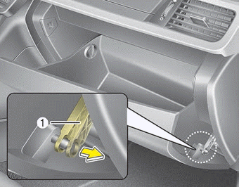 2. При открытом перчаточном ящике потяните за поддерживающий ремень (1).
