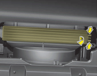 Воздушный фильтр климат-контроля следует заменять в соответствии с Техническим обслуживанием. Расписание. Если автомобиль эксплуатируется в городах с сильно загрязненным воздухом или на пыльных неровных дорог в течение длительного периода, его следует чаще осматривать и заменять ранее. При замене воздушного фильтра климат-контроля замените его, выполняя следующую процедуру и будьте осторожны, чтобы не повредить другие компоненты.