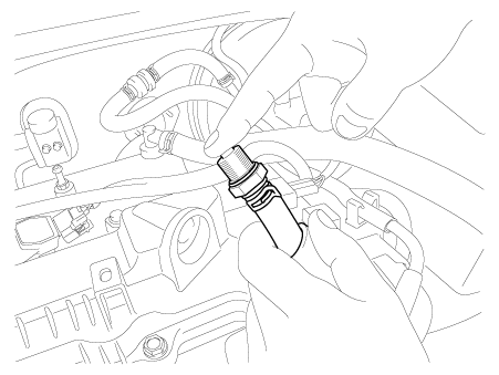 Отсоедините клемму (-) аккумуляторной батареи.
