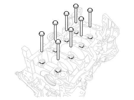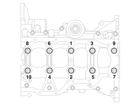 Всегда используйте новые болты крышек коренных подшипников коленчатого вала.