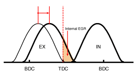 При управлении CVVT происходит перекрытие или недопуск клапана, что улучшает экономия топлива и снижение выхлопных газов (NOx, HC) и улучшение характеристик двигателя за счет снижения насосных потерь, внутреннего эффекта рециркуляции отработавших газов, улучшения сгорания стабильность, улучшение объемного КПД и увеличение работы расширения.
