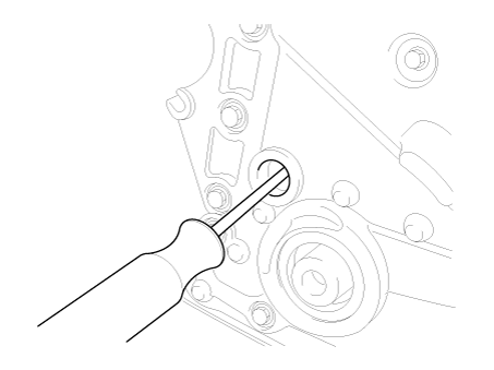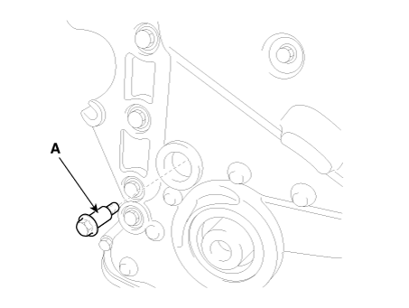 С помощью подходящего инструмента переместите рычаг натяжителя, чтобы выровнять натяжитель. отверстие под болт с сервисным отверстием.