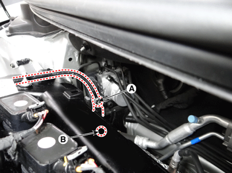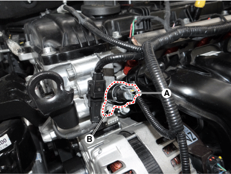 Снимите масляный регулирующий клапан CVVT, ослабив крепежный болт (B).