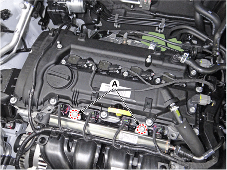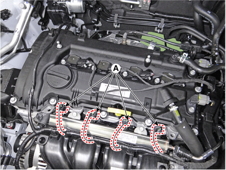 Отсоедините быстроразъемный соединитель трубки подачи топлива (А).