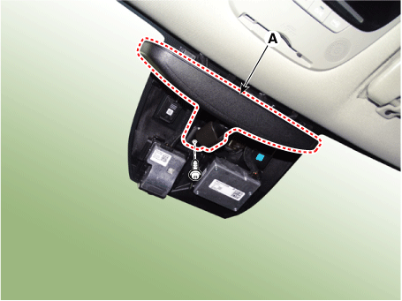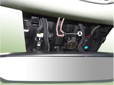 Отсоедините разъем внутреннего зеркала заднего вида (А).