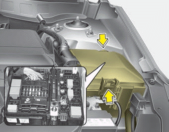 Всегда надежно устанавливайте крышку панели предохранителей в моторном отсеке, чтобы защитить от сбоев в электроснабжении, которые могут возникнуть в результате контакта с водой. Слушай слышимый щелчок, чтобы убедиться, что крышка панели предохранителей надежно закреплена.