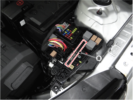 Снимите мультипредохранители (B), освободив крючок.