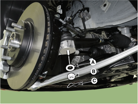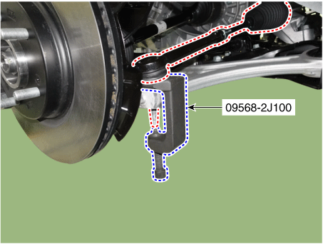 Отсоедините шаровой шарнир наконечника рулевой тяги от поворотного кулака с помощью SST. (09568-2J100).