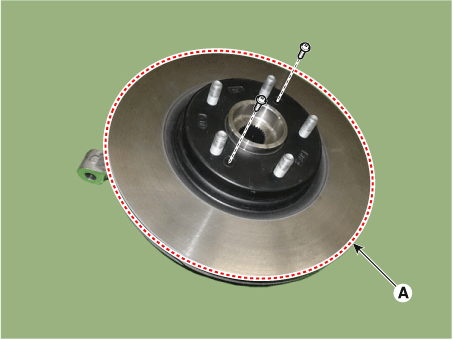 Снимите передний тормозной диск (А) после ослабления винтов.
