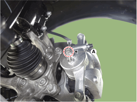 Снимите шланг после ослабления болта тормозного шланга (А) на суппорте.