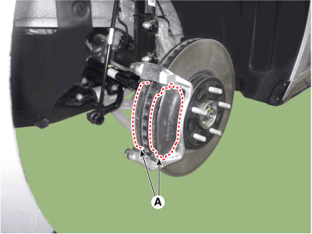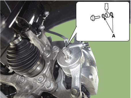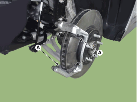Снимите держатель суппорта (А), ослабив болты крепления суппорта.
