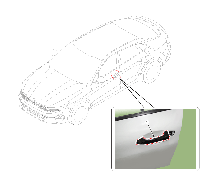Снимите наружную ручку передней двери (А), сдвинув ее назад.