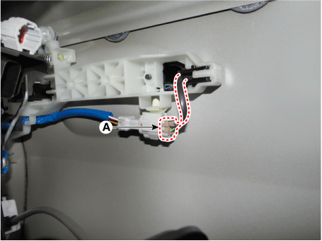 Нажмите на стопорный штифт и отсоедините разъем наружной ручки передней двери. (А).