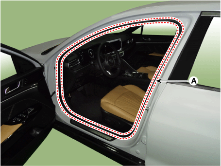 Отсоедините зажимы, затем снимите боковой уплотнитель передней двери (A).