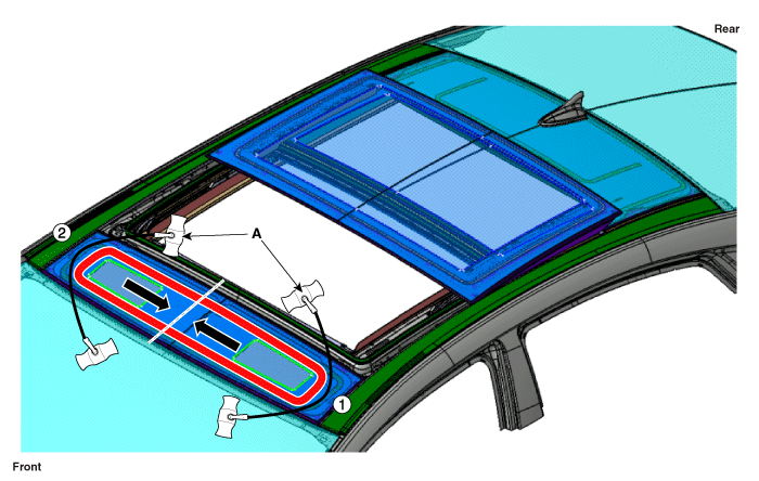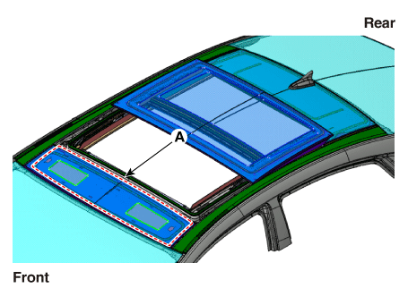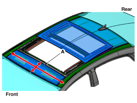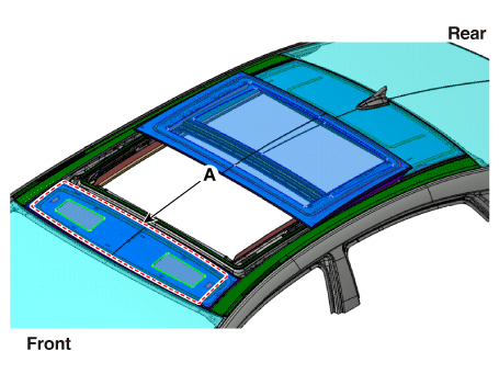 Проверьте шаг и зазор до того, как переднее стекло (A) будет полностью установлено. |