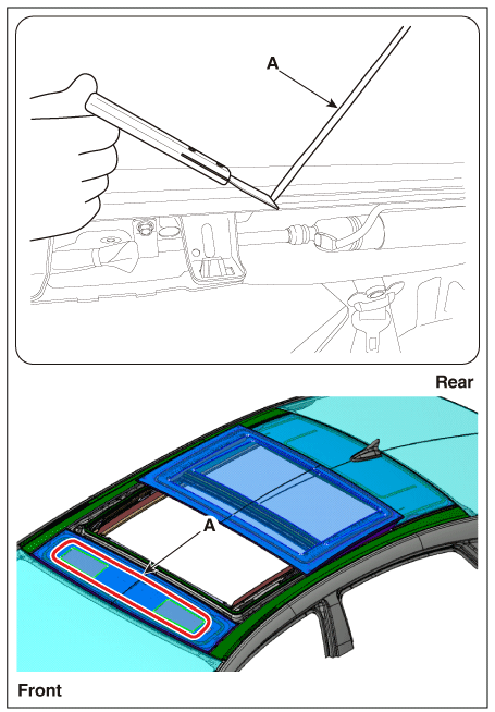 Используйте лезвие, чтобы срезать остатки герметика (A) вокруг панели кузова.