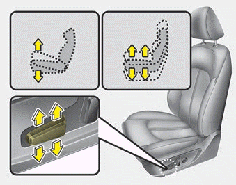Потяните переднюю часть переключателя управления вверх, чтобы поднять его, или нажмите вниз, чтобы опустить его. передняя часть подушки сиденья. Потяните заднюю часть переключателя управления вверх, чтобы поднять, или нажмите вниз, чтобы опустить подушку сиденья. Отпустите переключатель, как только сиденье достигает нужного положения.