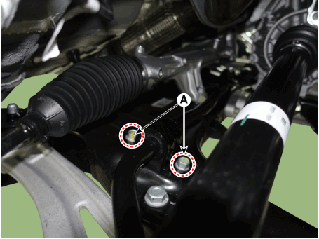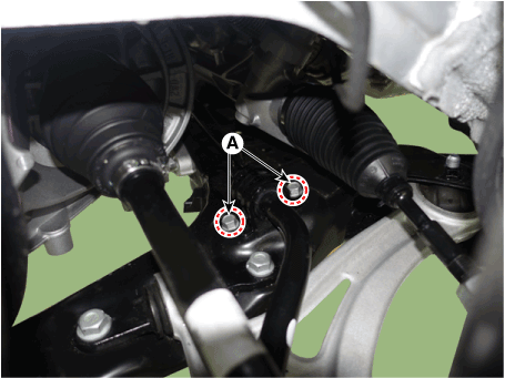 Ослабьте болт (А) и снимите стабилизатор поперечной устойчивости с подрамника.