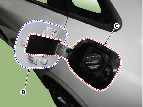 Внешняя крышка (B) может использоваться повторно, но кожух топливного люка (C)