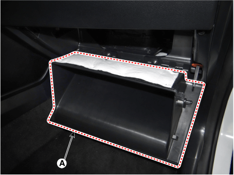 Откройте перчаточный ящик (А) в направлении стрелки.