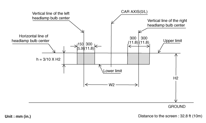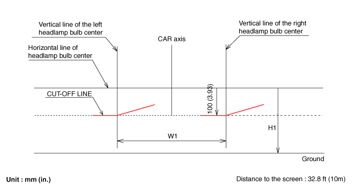 Граница светотеневой границы ближнего света должна быть спроецирована, как показано на рисунке.