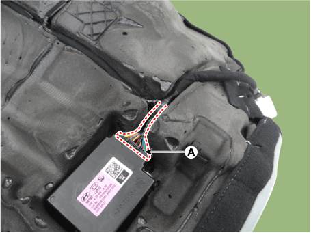 Отсоедините разъем блока обогрева заднего сиденья (А).