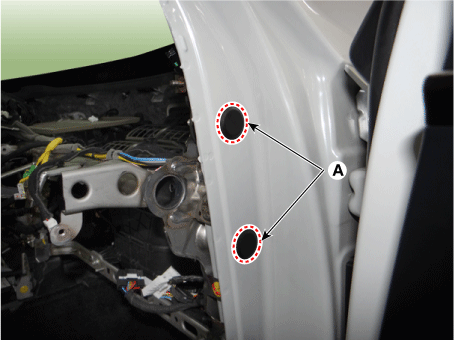 Снимите боковую отделку капота. (См. Кузов — «Боковая отделка капота») |